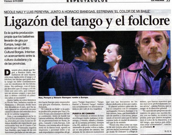 Nicole Nau supo, desde 1987, escoger su profesión, su escenario y su público .Es considerada como la primera bailarina del tango; una materia tan difÃcil si se practica sobre todo en la ciudad de Buenos Aires, donde abundan virtuosos en la disciplina y se tiene un origen germano. Nació en Dusseldorf, un 30 de enero de 1963, una urbe de pasado napoleónico y de mucha atracción para los nipones, que quedo destruida durante las guerras y que hoy es apreciada por su carácter cosmopolita. Nicole vino a este paÃs del sur y se quedo en la capital argentina, luego de convencerse que le gustaba su cultura y su gente .Fue cuando acepto un reto muy difÃcil, que logro superar con mucho trabajo y mucha constancia. Manuel BolÃvar Graterol
