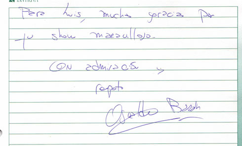 Nicole Nau con Osvaldo Bazán de Canal 13, y.... abajo.....Osvaldo Bazán dedicándole unas lineas a Luis Pereyra: