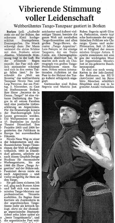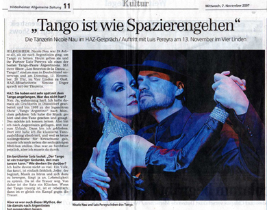 PRESS Tango ist wie Spazierengehen, Hildesheimer Allgemeine Zeitung (News) |