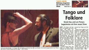 Ăber 200 verschiedene folkloristische TĂ€nze existieren in Argentinien - der Tango ist einer davon. Pereyra beherrscht sie alle - weil er seit seinem fĂŒnften Lebensjahr nichts anderes gemacht hat, als zu tanzen. Mit zehn Jahren stand er zum ersten Mal auf der BĂŒhne. "Durch ihn habe ich gemerkt, wie wenig ich eigentlich konnte", meint Nicole Nau im RĂŒckblick. Und beginnt von ihm wie eine 15-jĂ€hrige zu schwĂ€rmen. "FĂŒr mich ist er der Nonplusultra-TĂ€nzer. Wenn ich mir groĂe TĂ€nzer wie Barishnikow, Antonio Gades oder Fred Astaire anschaue finde ich etwas Ăhnliches bei Luis im Bereich des Tangos und des populĂ€ren Tanzes. Er sieht sich als Instrument, das Musik sichtbar macht."