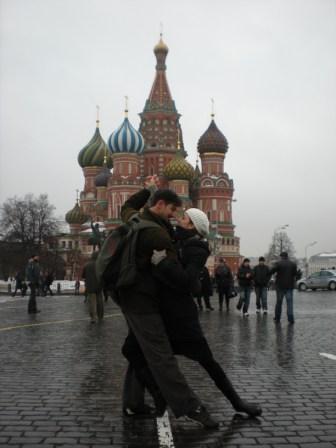 La pareja Ernesto Suter y Paola Klinger, integrantes del elenco "El Sonido de mi Tierra" de Nicole Nau y Luis Pereyra, viajaron a Moscú en representación de la compañia.
