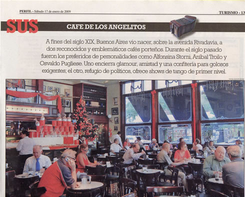 las violetas cafe versus cafe de los angelitosDos cafés con historiaA fines del siglo XIX, Buenos Aires vio nacer, sobre la avenida Rivadavia, a dos reconocidos y emblemáticos cafés porteños. Durante el siglo pasado fueron los preferidos de personalidades como Alfonsina Storni, AnÃbal Troilo y Osvaldo Pugliese. Uno encierra glamour, amistad y una confiterÃa para golosos exigentes; el otro, refugio de polÃticos, ofrece shows de tango de primer nivel.# para leer articulo, cliquee en las fotos