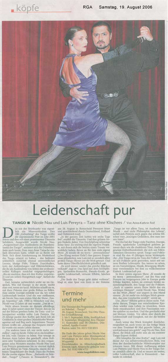 TEXT Uraufführung Bailando en Soledad...Tango! (Archiv 2006) |