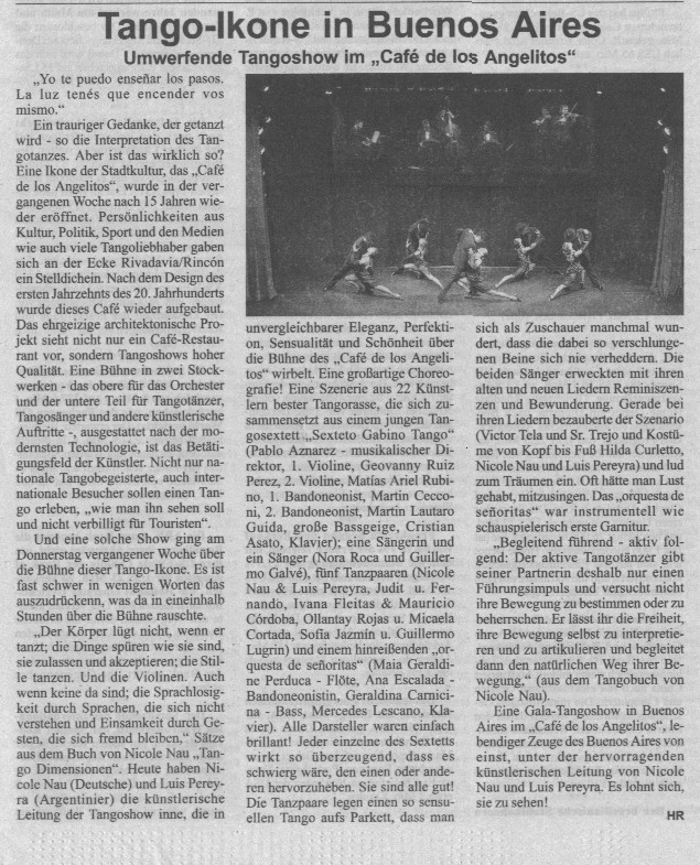 Café de los Angelitos, Buenos Aires, Rincón & Rivadavia. Täglich 22:00. Nau Pereyra in kÑunstlerischer Leitung und Solotanz